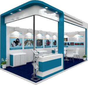 A Package of 12 sqm. Stall includes 2 or 3 Side Octonorm wall, 1 Laminated Table, 2 Chairs, One 5/15 amp electric socket, 3 Spot Lights, 1 Dustbin, Floor Carpet, Exhibitor’s name written on the Fascia of the Stall